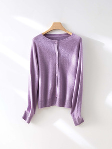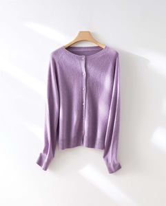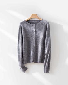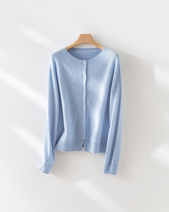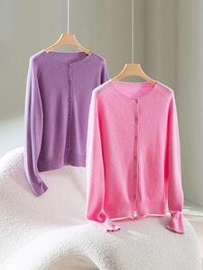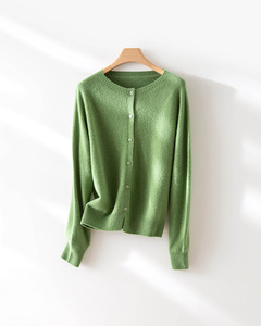 【澳洲美丽诺羊毛】多巴胺无缝一体圆领全羊毛开衫女早秋针织上衣