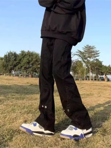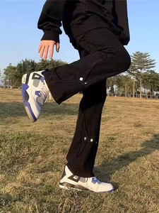 美式高街vibe风黑色排扣牛仔裤男春秋新品宽松直筒休闲微喇裤男装