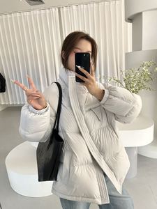 欧版新款冬季2025新款斜拉链气质百搭立领羽绒服女90白鸭绒面包服