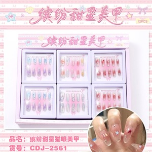 缤纷甜星猫眼美甲3-12岁儿童穿戴甲批发儿童ins风爆闪可爱美甲贴