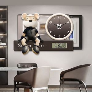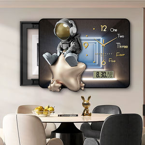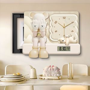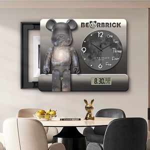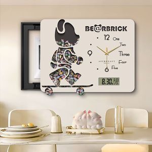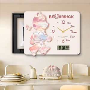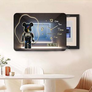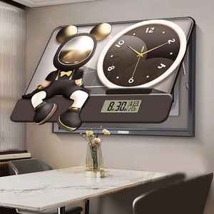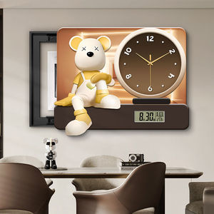 轻奢暴力熊电表箱装饰画免打孔带钟表万年历配电箱电闸盒遮挡挂画