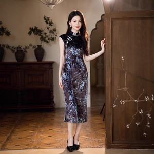 唐依恋新中式旗袍2025新款气质高端蓝色无袖长款连衣裙修身年轻款