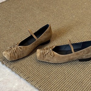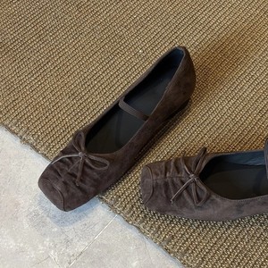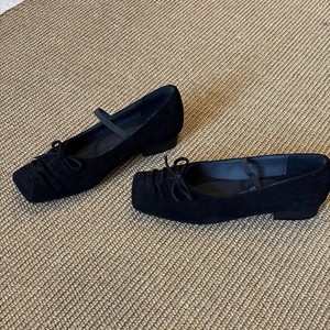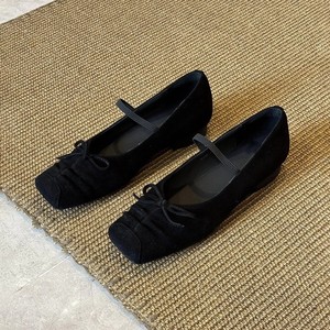羊皮版~法式方头低粗跟蝴蝶结褶皱设计一字带气质小众女浅口单鞋