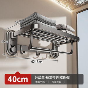 奶油风轻奢免打孔吸盘毛巾架卫生间壁挂置物架塑料碳钢厕所浴室架