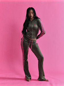 欧美新款跨境INS时尚撞色复古运动休闲拉链长袖外套系带长裤套装