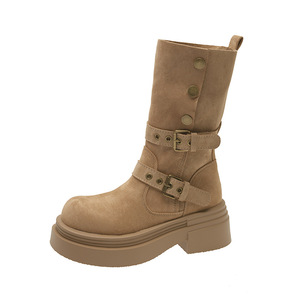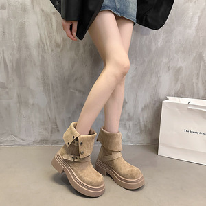 软皮版·美拉德厚底增高马丁靴女2025年秋季新款不过膝两穿西部短