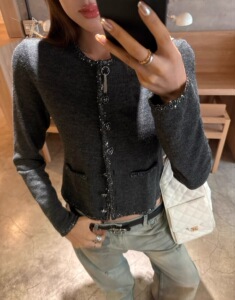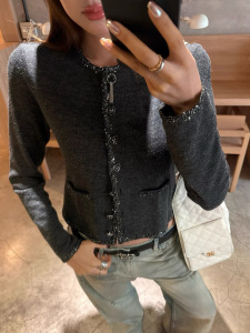 Ranwear Paris千金 法式温柔气质小香设计感亮片织带针织毛衣开衫