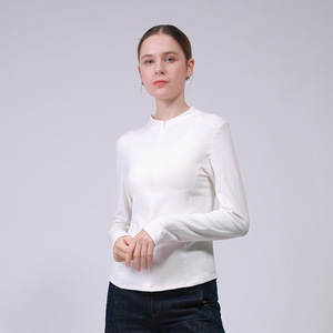 速暖休闲风半拉链小立领修身长袖2025冬打底衫女MBH073圆领腈纶
