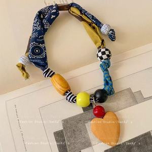 爱心木质串珠拼接项链女适合夏天戴的毛衣链小众设计长款挂脖配饰