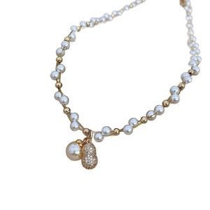 珍珠串珠锆石葫芦吊坠项链轻奢复古精致锁骨链个性气质高级感饰品