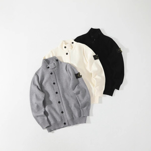 高定自主石头同款春秋新款经典袖标针织毛衣开衫高克重跨境货源棉