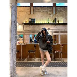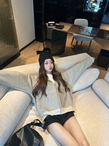 韩系慵懒风撞色条纹连帽拉链卫衣外套女秋季小众百搭宽松显瘦上衣