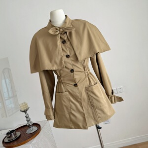 2025实拍秋季新款两件套英伦风可拆卸收腰斗篷风衣