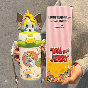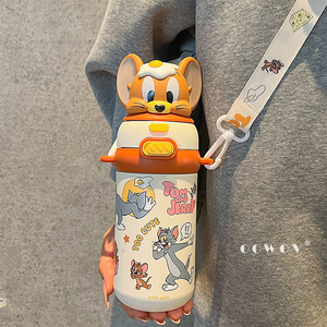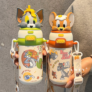 猫和老鼠保温杯2025新款女生高颜值学生上学专用吸管水杯子带背带