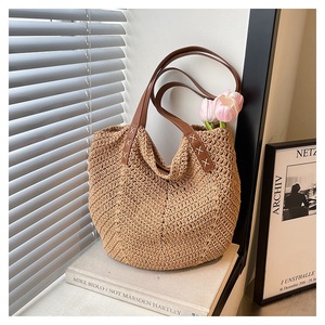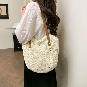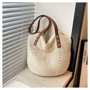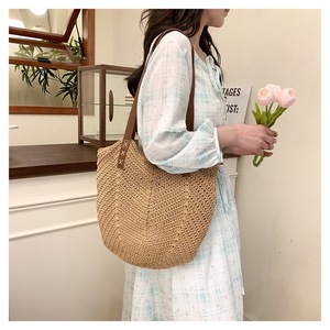 新款棉线单肩手工编织包百搭草编包海边度假沙滩包大容量托特女包