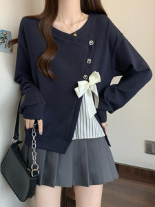 设计感假两件长袖卫衣女2025春秋季蝴蝶结宽松别致超好看上衣
