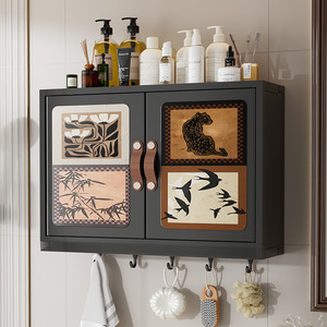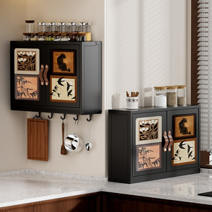橱柜调料盒调味品整理用品储物柜中古风浴室厨房壁挂式收纳置物架