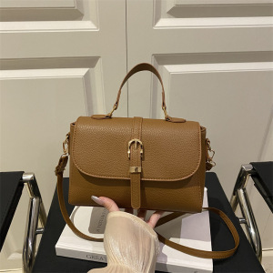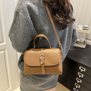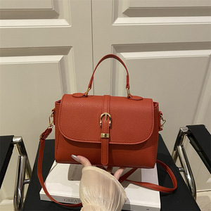 跨境手提小方包包女2025新款荔枝纹复古质感单肩包欧美时尚斜挎包