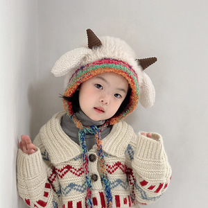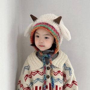 儿童帽子冬季保暖加厚针织毛绒帽男女宝宝可爱牛角护耳套头毛线帽