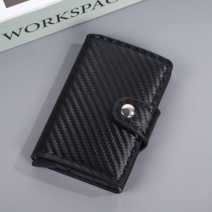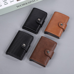 跨境爆款 RFID铝盒卡包碳纤维PU防盗刷信用卡套金属 自动弹卡卡盒