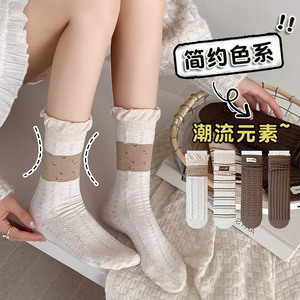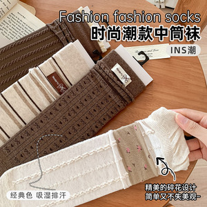 CHEEMY FREE秋季新款布标卡其色系直板微堆女中筒袜韩系ins风袜