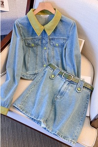 大码女装2025年春装新款胖妹妹气质牛仔外套高腰休闲半身裙两件套