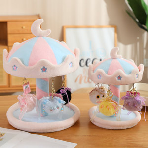 梦幻旋转谷子娃屋展示架旋转木马棉花娃娃屋手动旋转毛绒娃屋挂件