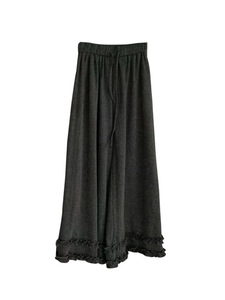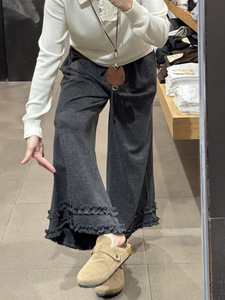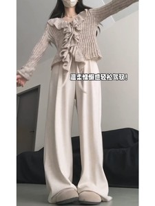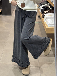 秋装深灰色花边针织阔腿糯米裤子大码女装胖mm显瘦慵懒毛巾休闲裤