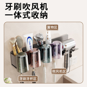 牙刷置物架免打孔吹风机支架一体卫生间挂墙式漱口杯刷牙杯收纳架