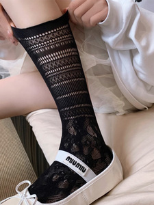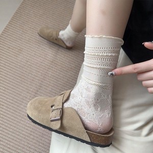 春秋薄木耳边蕾丝袜女夏网眼镂空花边中筒袜日系芭蕾风卷边堆堆袜