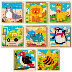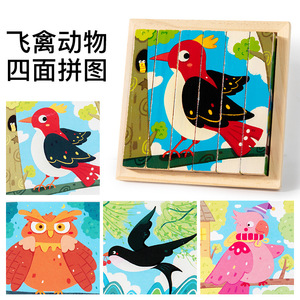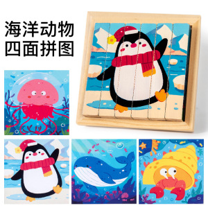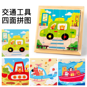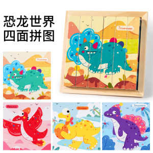 儿童益智早教积木玩具四面画立体拼图3d带底座木制4一6男女孩宝宝