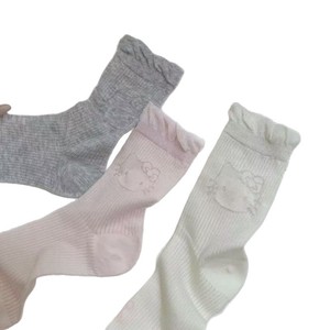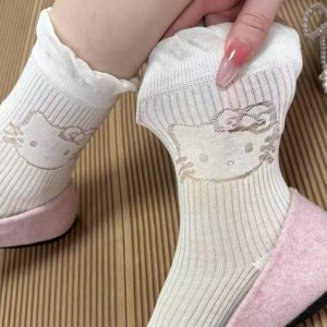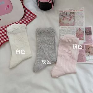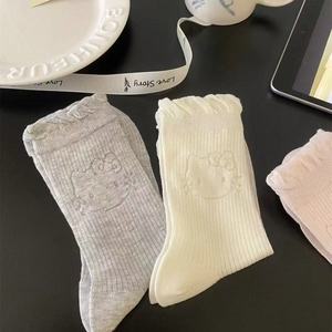 薄款日系凯蒂猫袜子女中筒无骨堆堆袜可爱Kitty猫蕾丝花边中筒袜
