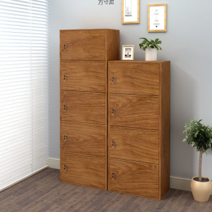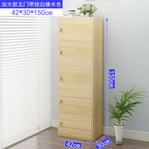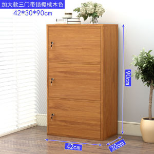 简约带锁柜子多层储物柜带门木柜自由组合家用书柜书架置物小柜子