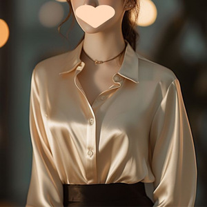 2025年春秋新款高级感抗皱缎面香槟色衬衫女长袖时尚通勤气质衬衣