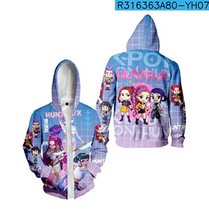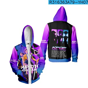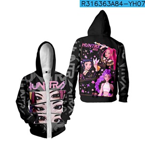 3D新款电影 K-POP 猎魔女团套头连帽带帽拉链卫衣成人儿童装