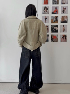 【现货】mediu 菱形格卡其收腰夹克25秋冬沙卡水洗廓形短外套上衣