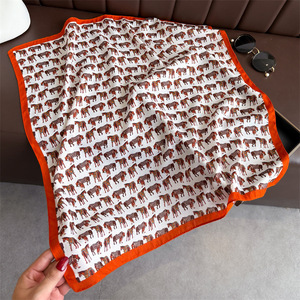 职业百搭人字纹棉麻感小方巾丝巾仿丝绒头巾披肩防晒围脖女士围巾