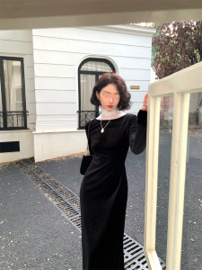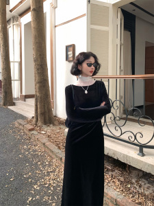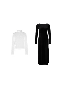 酒午自制【双11款】港风复古赫本风高领打底上衣+连衣裙两件套装