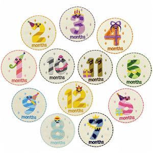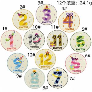 新款卡通宝宝圆形数字刺绣布贴12月份补丁绣花贴片服装辅料热熔胶