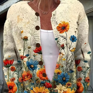 2025亚马逊欧美外贸新款3d印花女装开衫针织外套春秋款开衫外套
