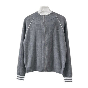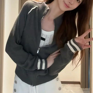 韩系复古撞色拉链针织开衫外套高级感宽松上衣女装外贸毛织衫工厂