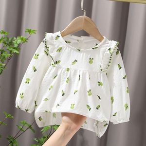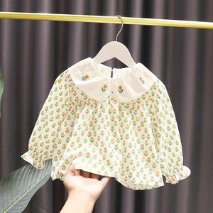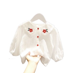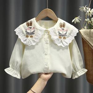 女童衬衫春秋2025新款翻领棉质长袖白色衬衣女孩洋气秋装儿童上衣