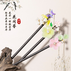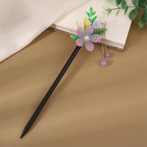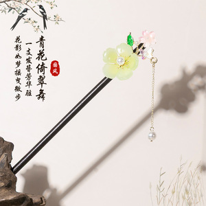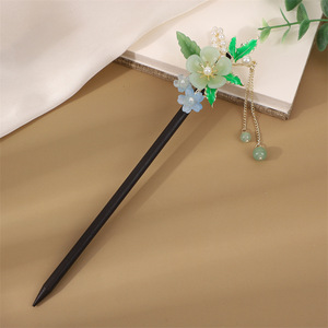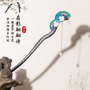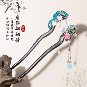 古风扇形流苏发簪仿黑檀木簪盘头发汉服配饰新中式发钗饰品批发女