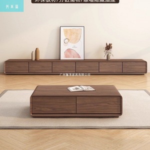 全实木电视柜日式现代简约客厅家用黑胡桃色烤漆极简地柜电视机柜