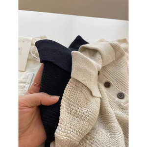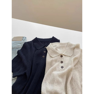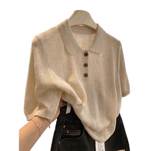 法式亚麻冰丝翻领针织短袖T恤女2025夏季气质百搭修身polo衫上衣