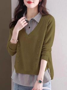 衬衫领毛衣打底衫女春春秋2025新款时尚洋气外穿假两件针织衫上衣