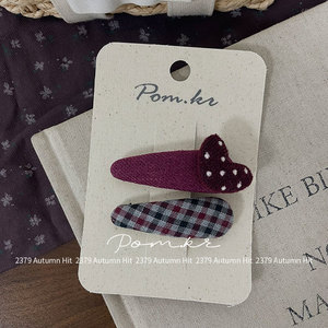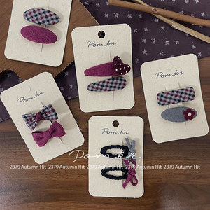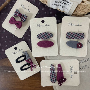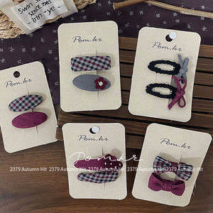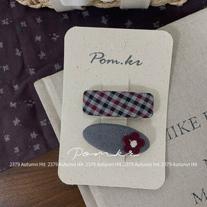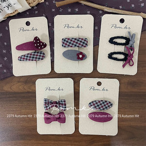 新款韩版红色系格纹发夹儿童布艺侧边碎发刘海夹蝴蝶结掰掰夹发饰