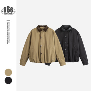 OLDTRIBE美式复古工装夹克男女PU拼接翻领春秋潮牌狩猎外套JK246