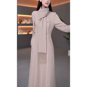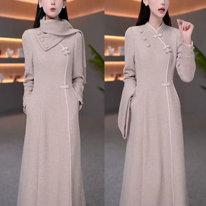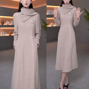 2025秋冬季新款时尚设计感遮肚裙子女显瘦气质内搭旗袍围巾连衣裙