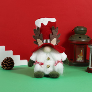 圣诞节新装饰品带鹿角蝴蝶结礼帽尖帽白胡子侏儒小挂件节日摆件
